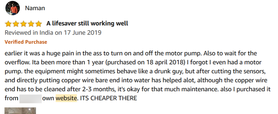 - Let me show you something .go for a keyword water level controller . You will find a live example as we explained before .The blue box toy standing in front of the row has clearly mentioned it’s own website url in the comment box and with a description “product available cheaper here “ and drives traffic to its own website .
